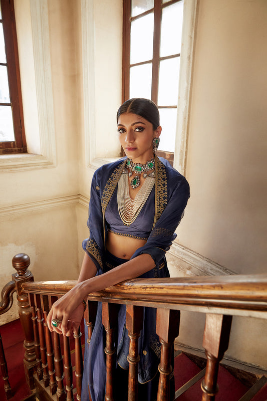 Shabhnam Lehenga Set (Indigo)