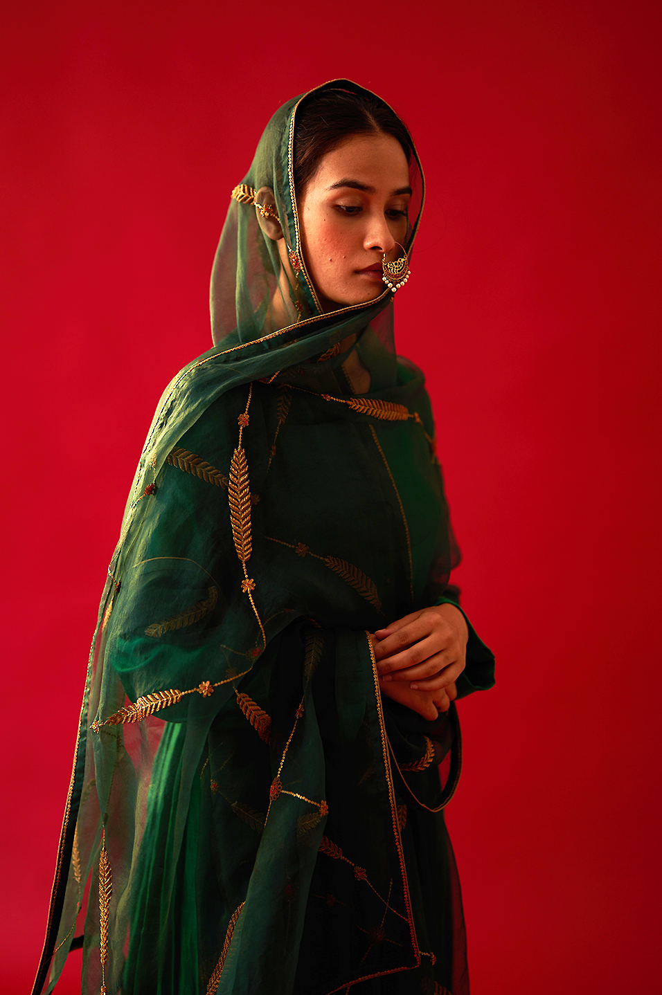 Alara Anarkali (Emerald with Dark Olive Dupatta)