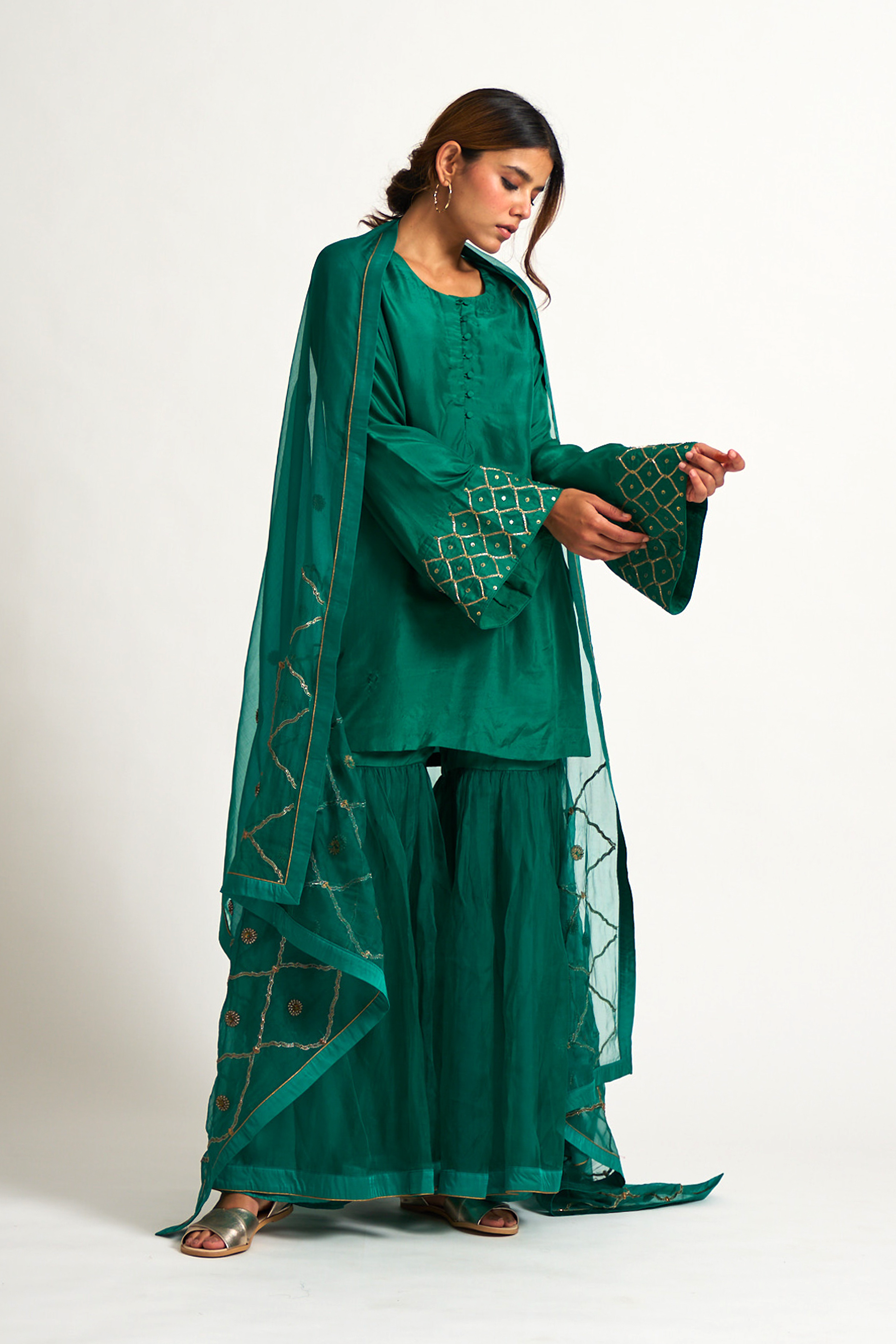 Material: Chanderi Silk (Sharara set) ; Organza (Dupatta)