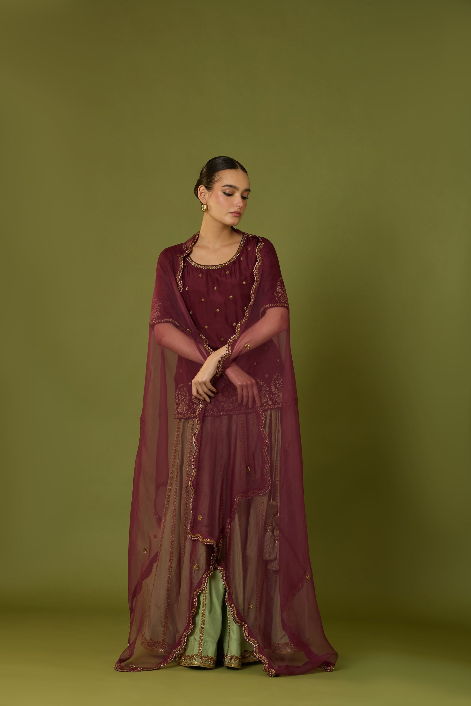 Color: Wine Kurta-Dupatta & Mint Green - Lehenga