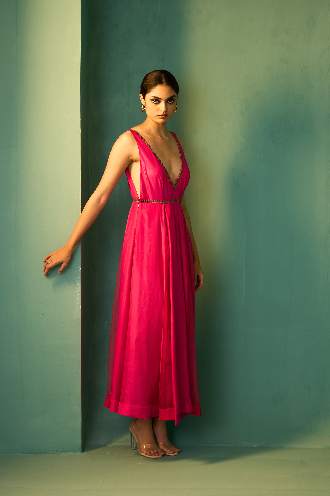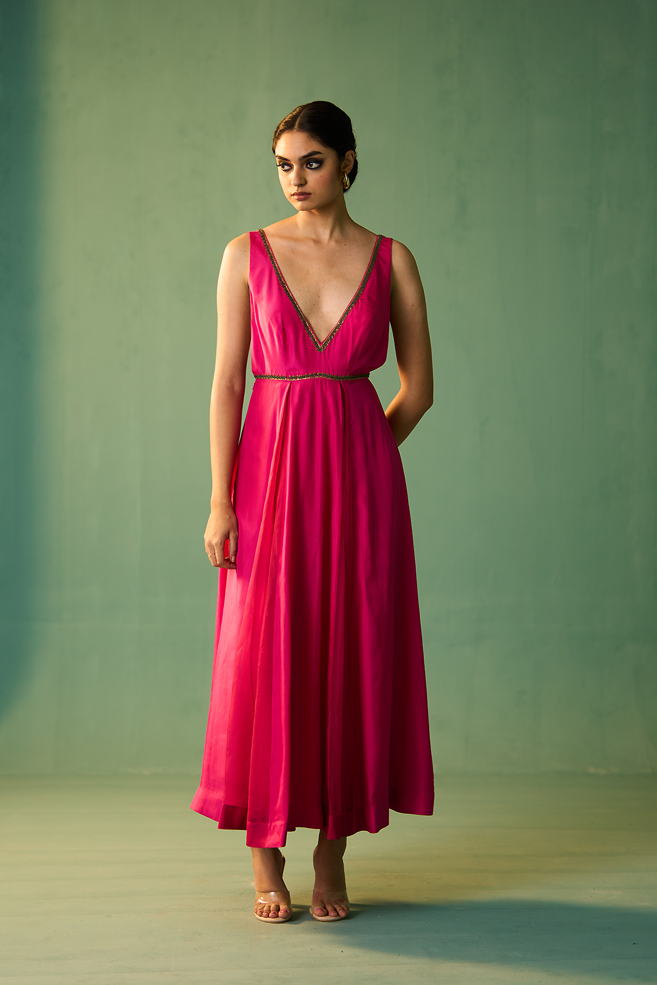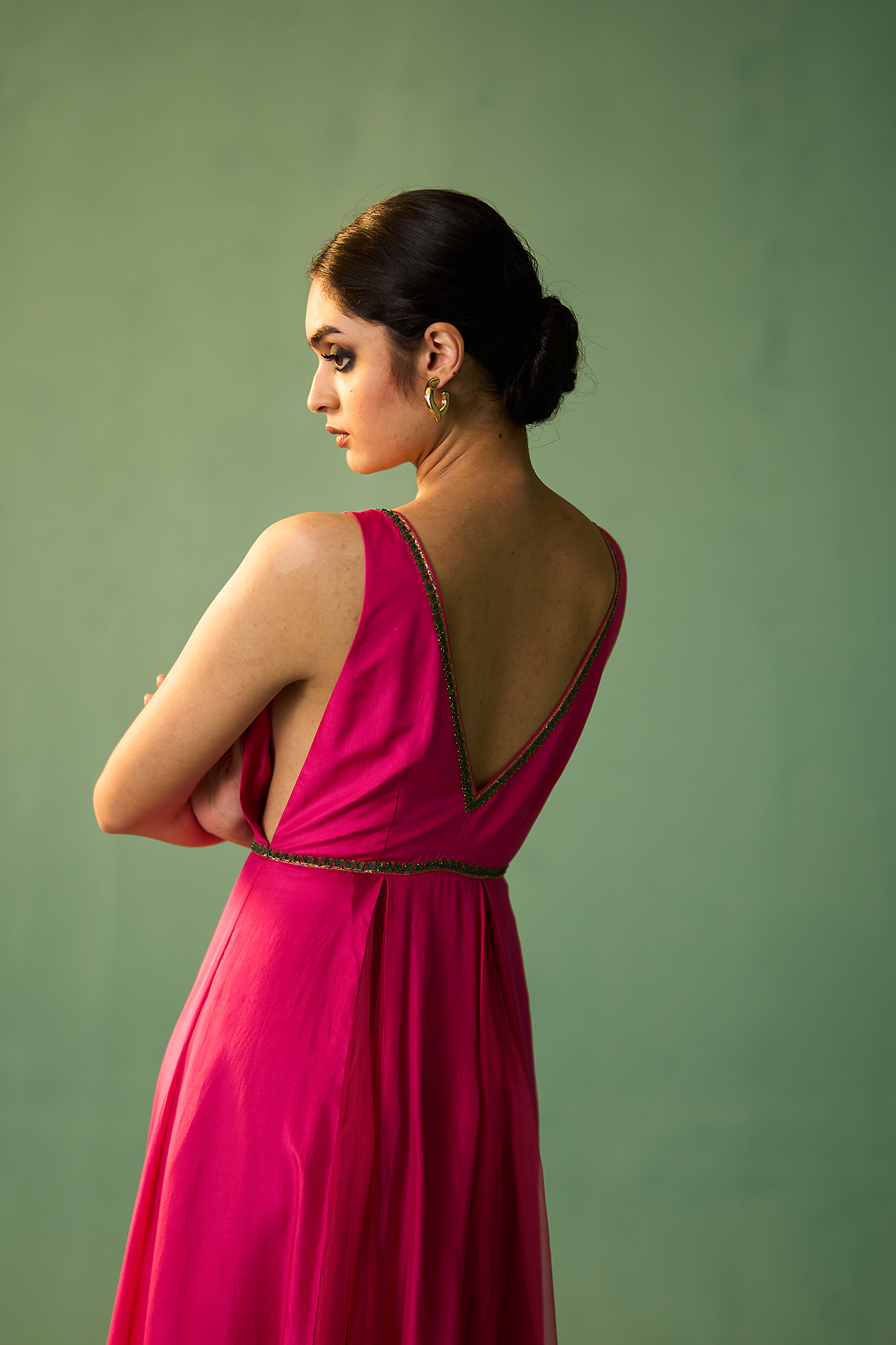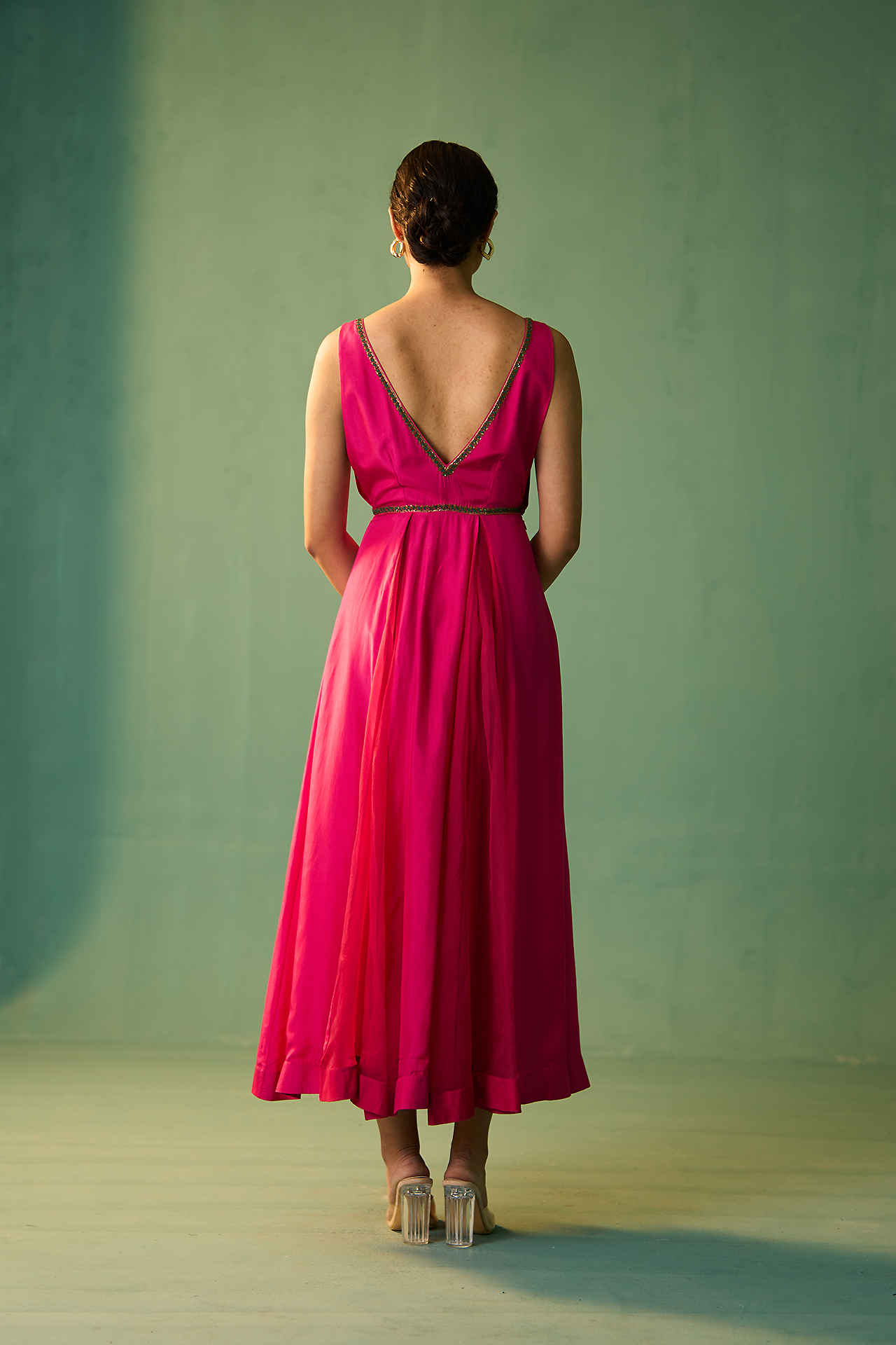 This dress is adorned with elaborated techniques of 'Zardozi' & 'Marori' hand embroidery.