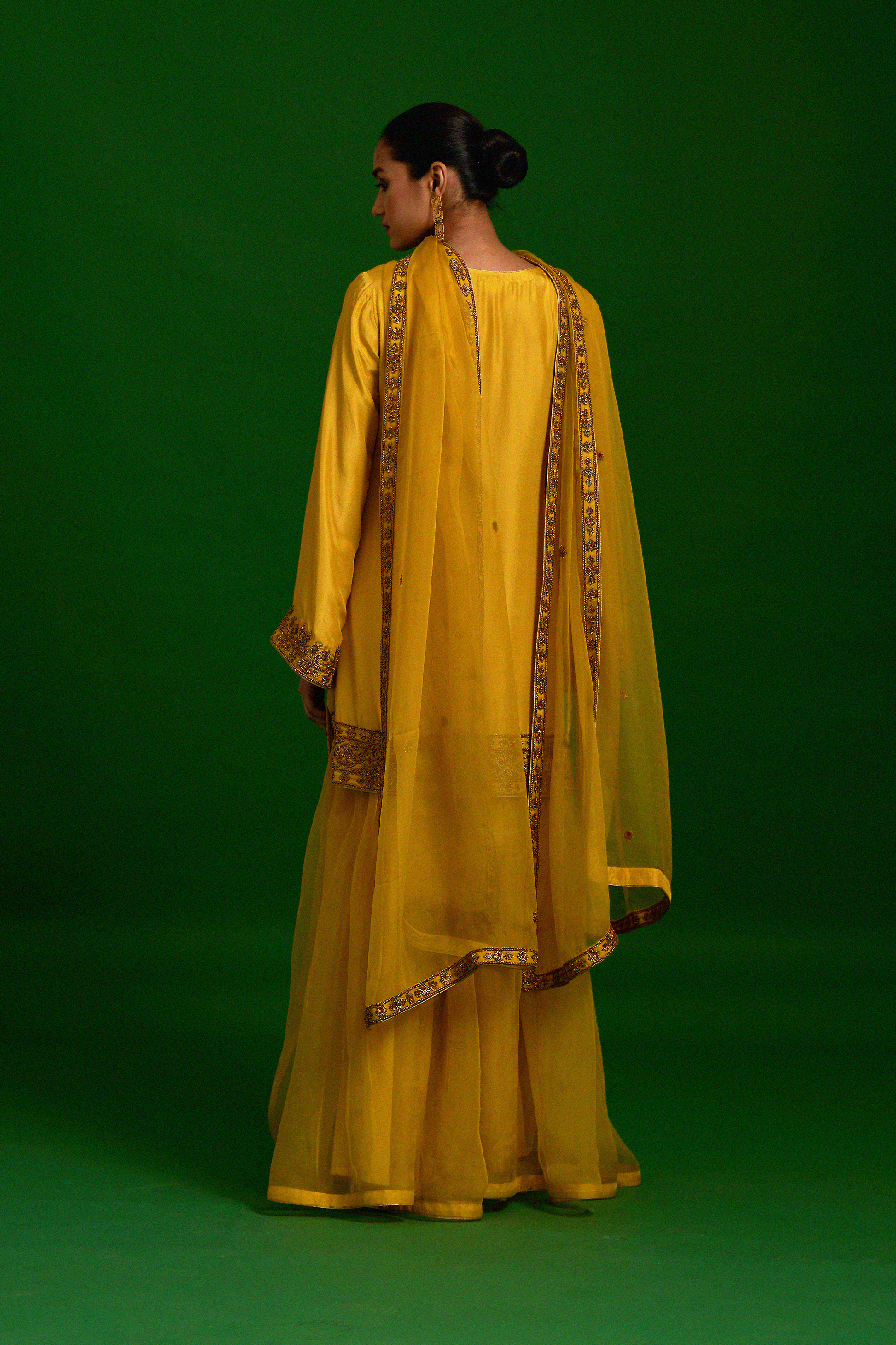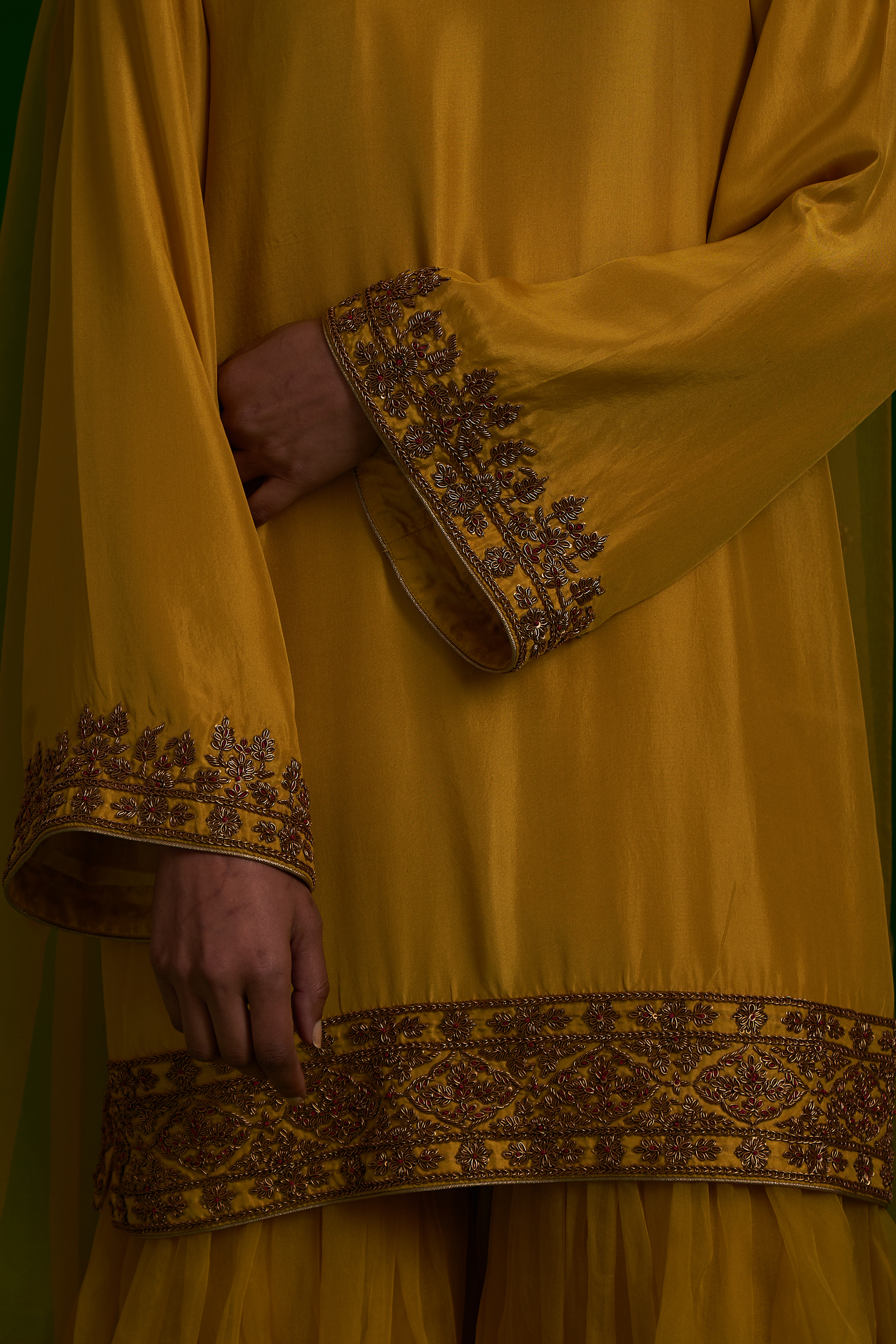 Material: Habutai Silk (Kurta & Sharara); Organza (Dupatta)