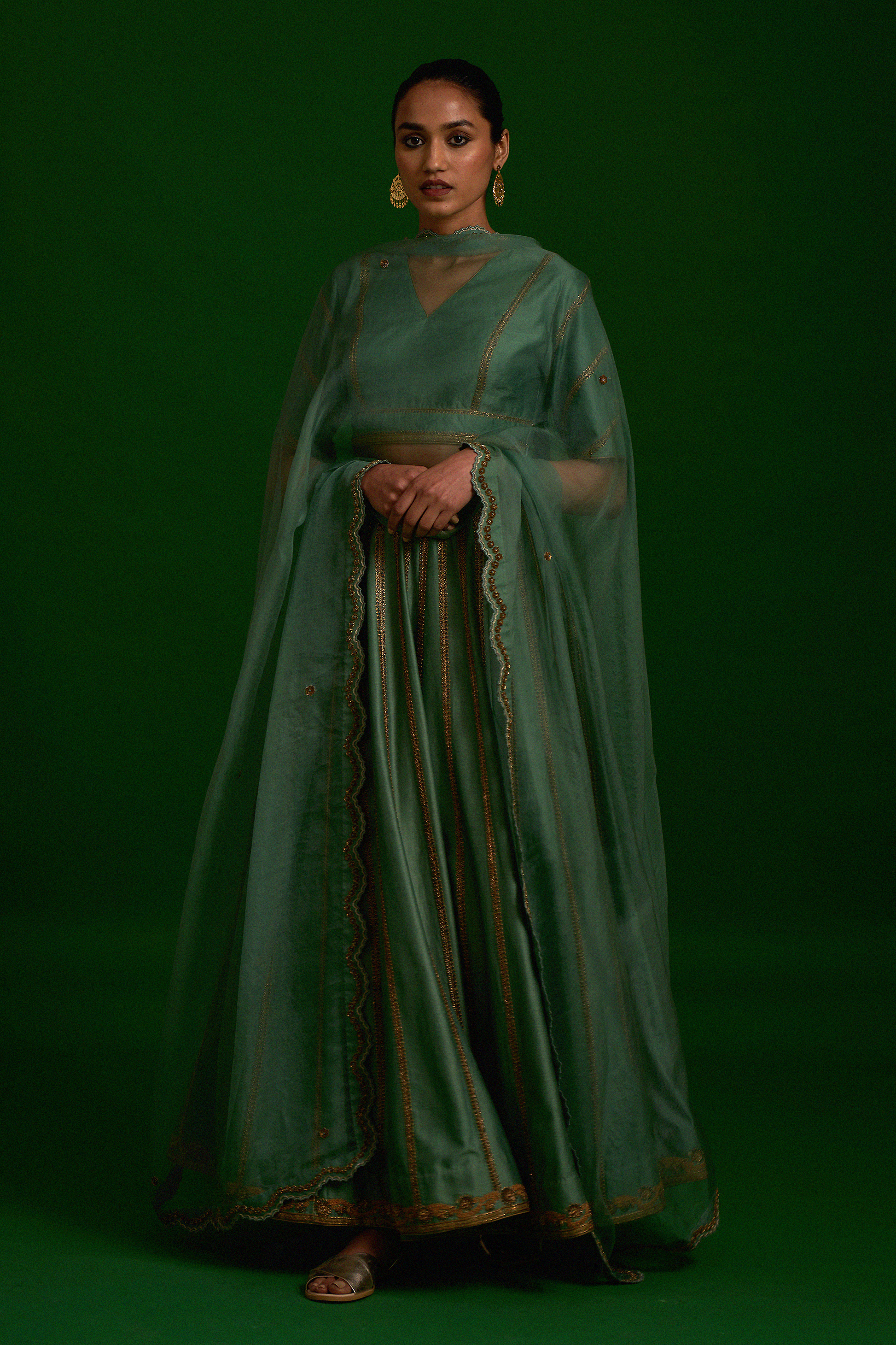 Material: Chanderi Silk (Lehenga & blouse); Organza (Dupatta)