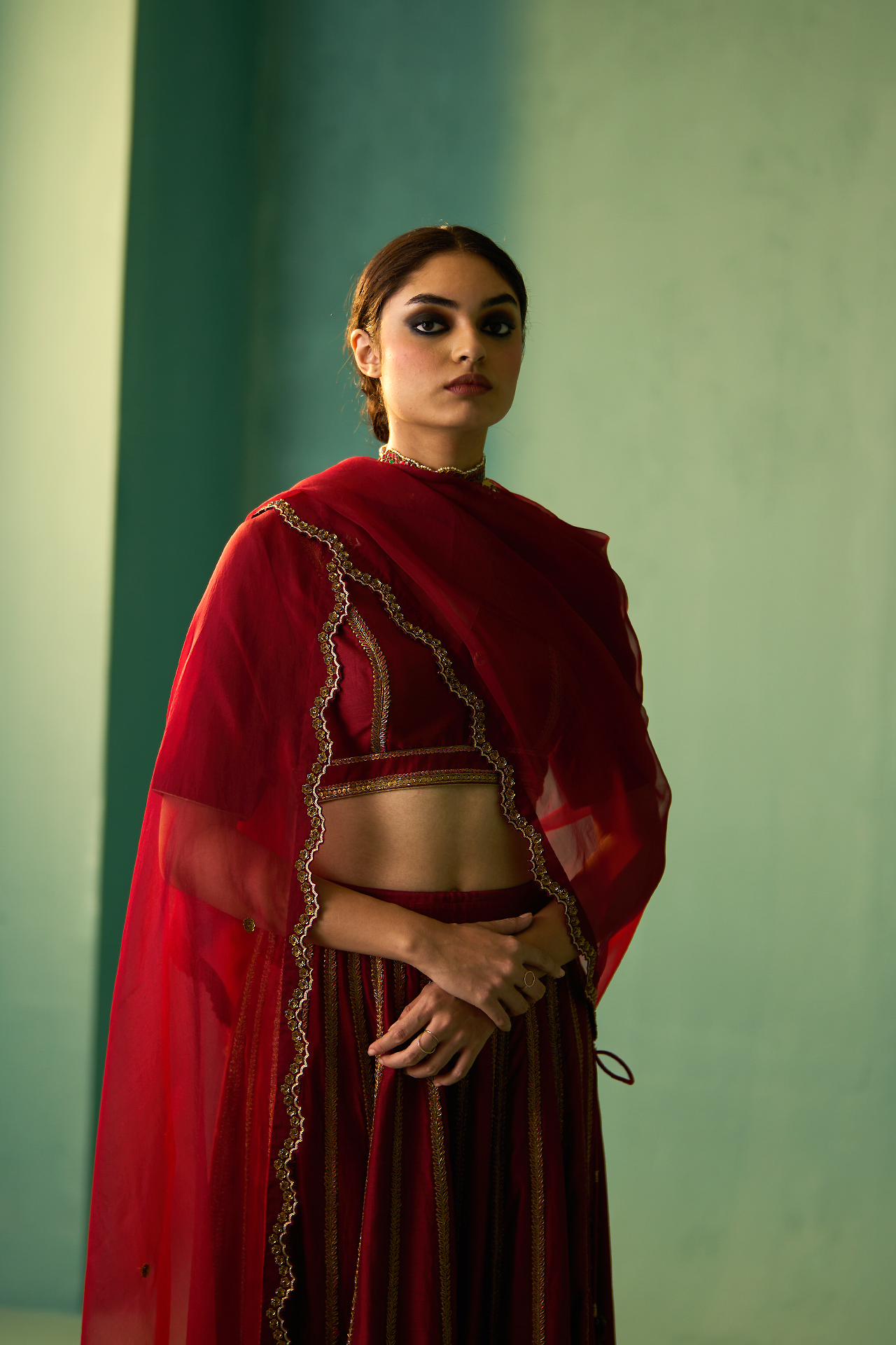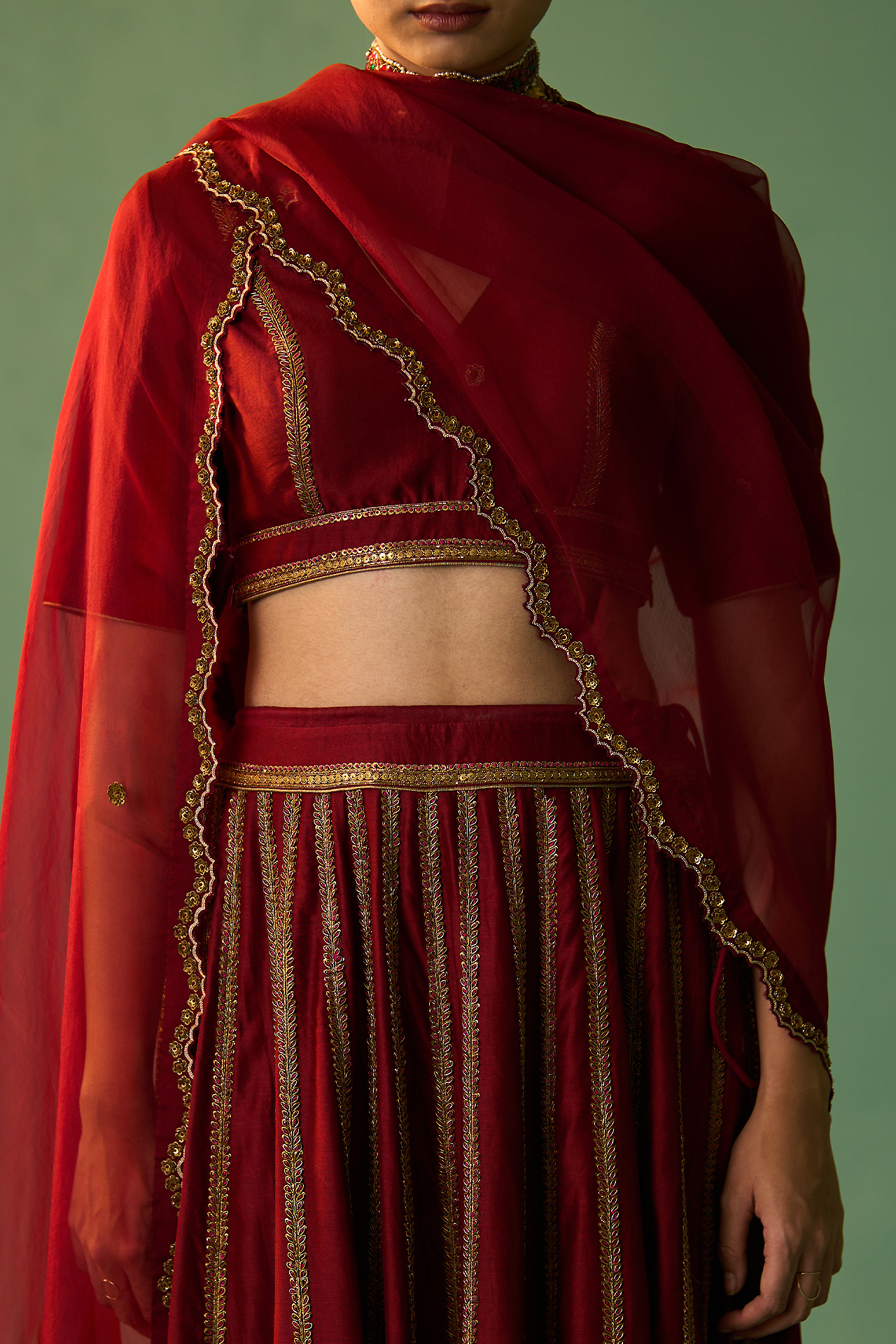 Material: Chanderi Silk (Lehenga & blouse); Organza (Dupatta)