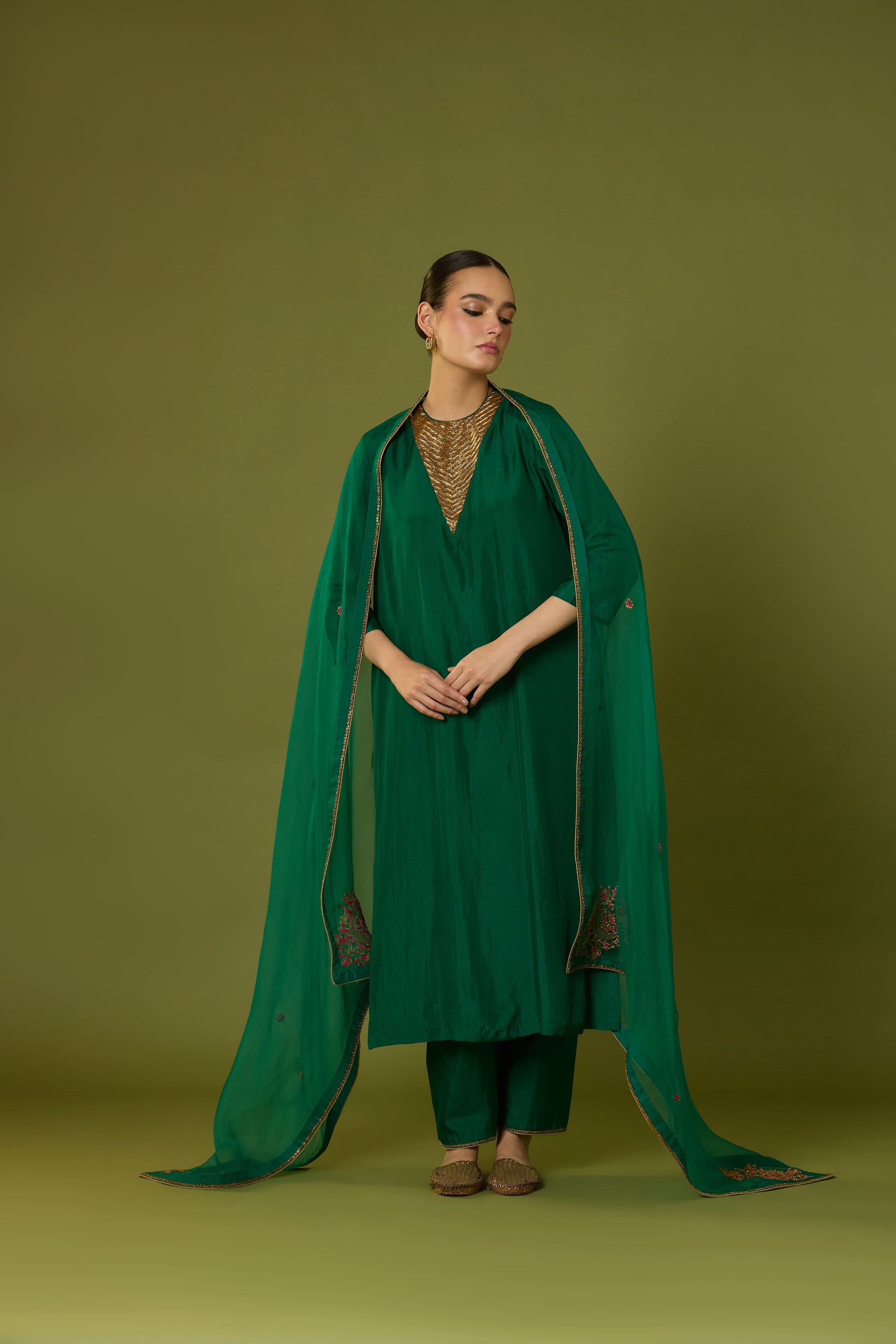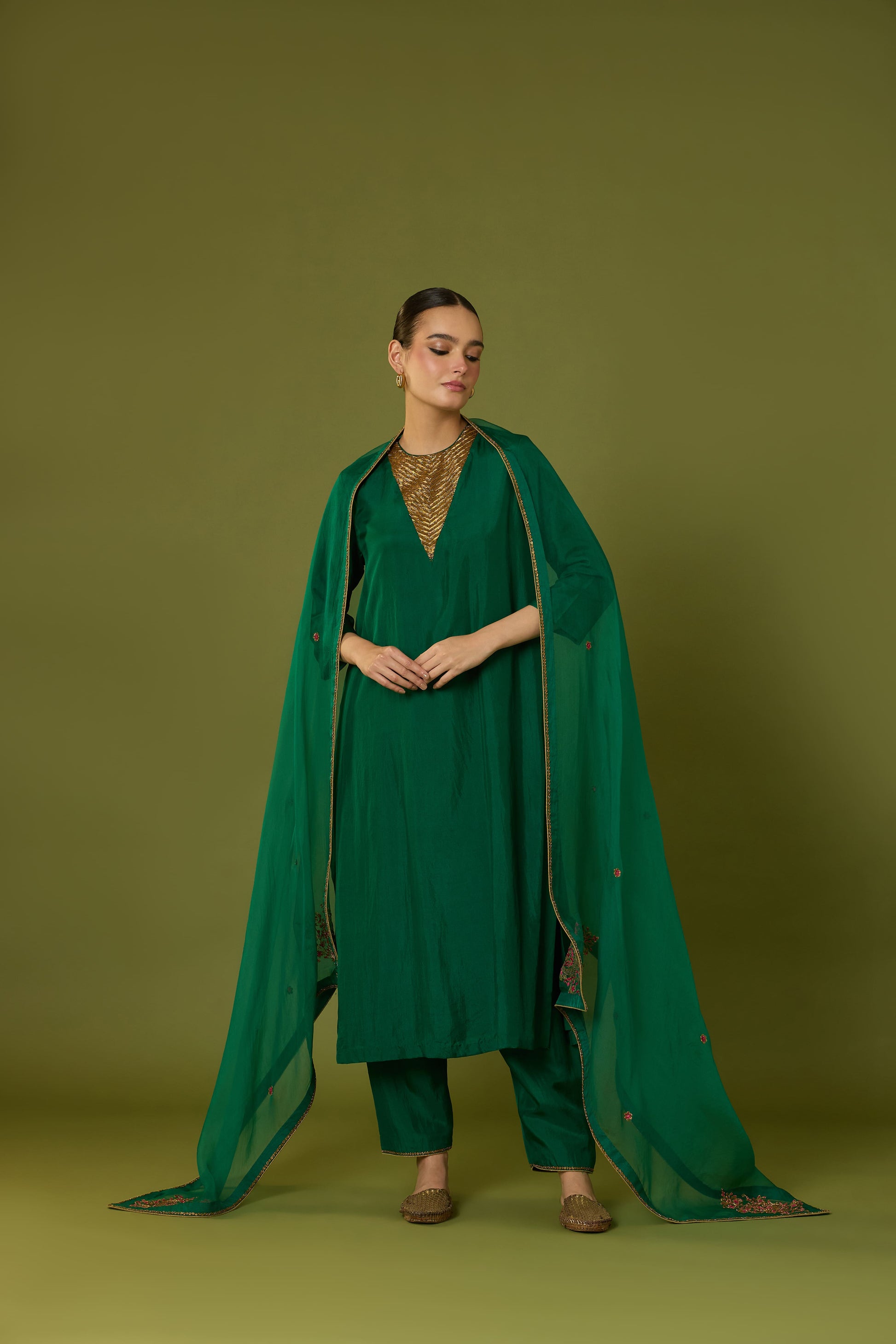 Heer Kurta Pant with Indira Dupatta (Emerald Green)