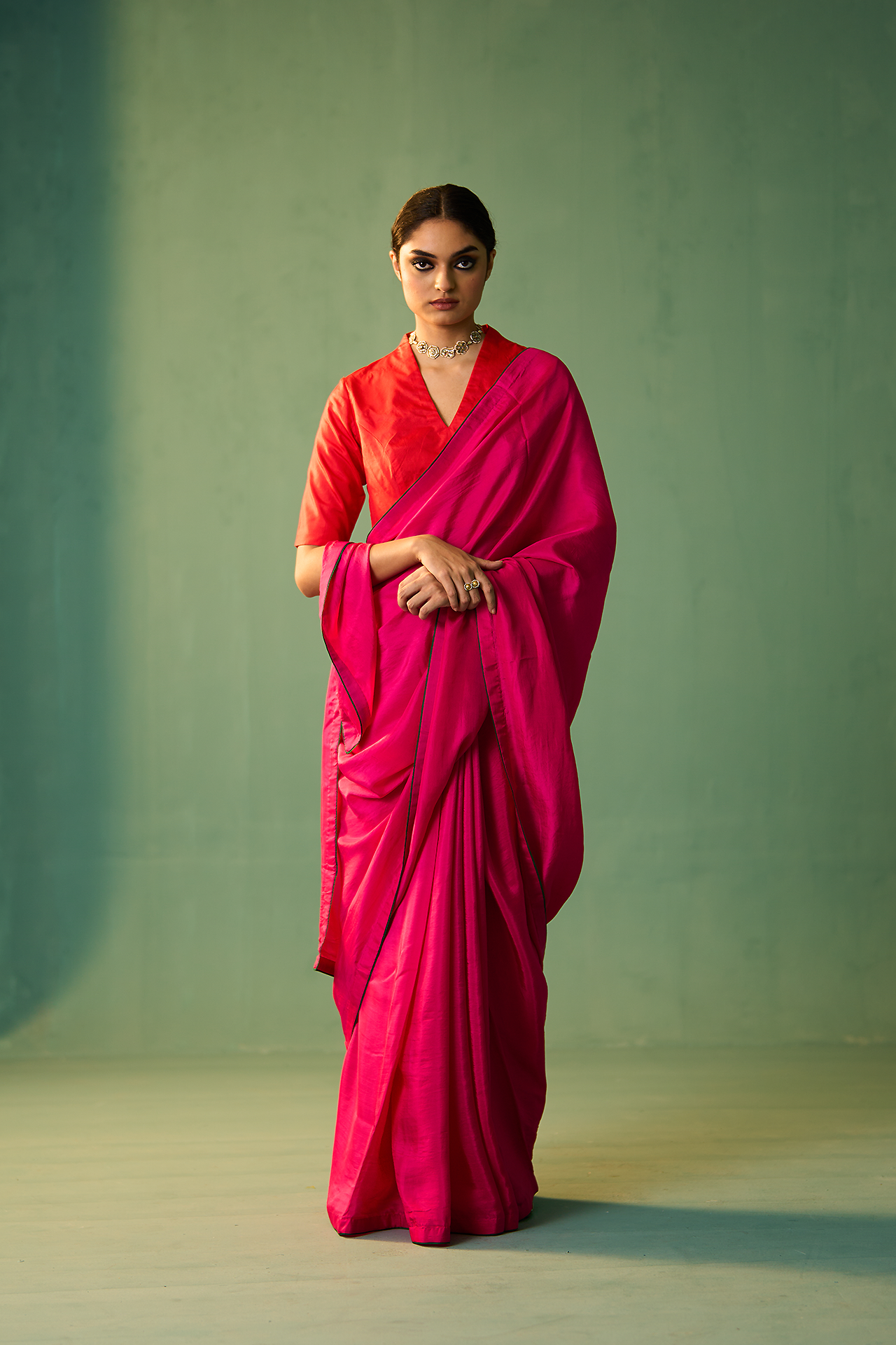This blouse is adorned with elaborated techniques of 'Zardozi' & 'Marori' hand embroidery.