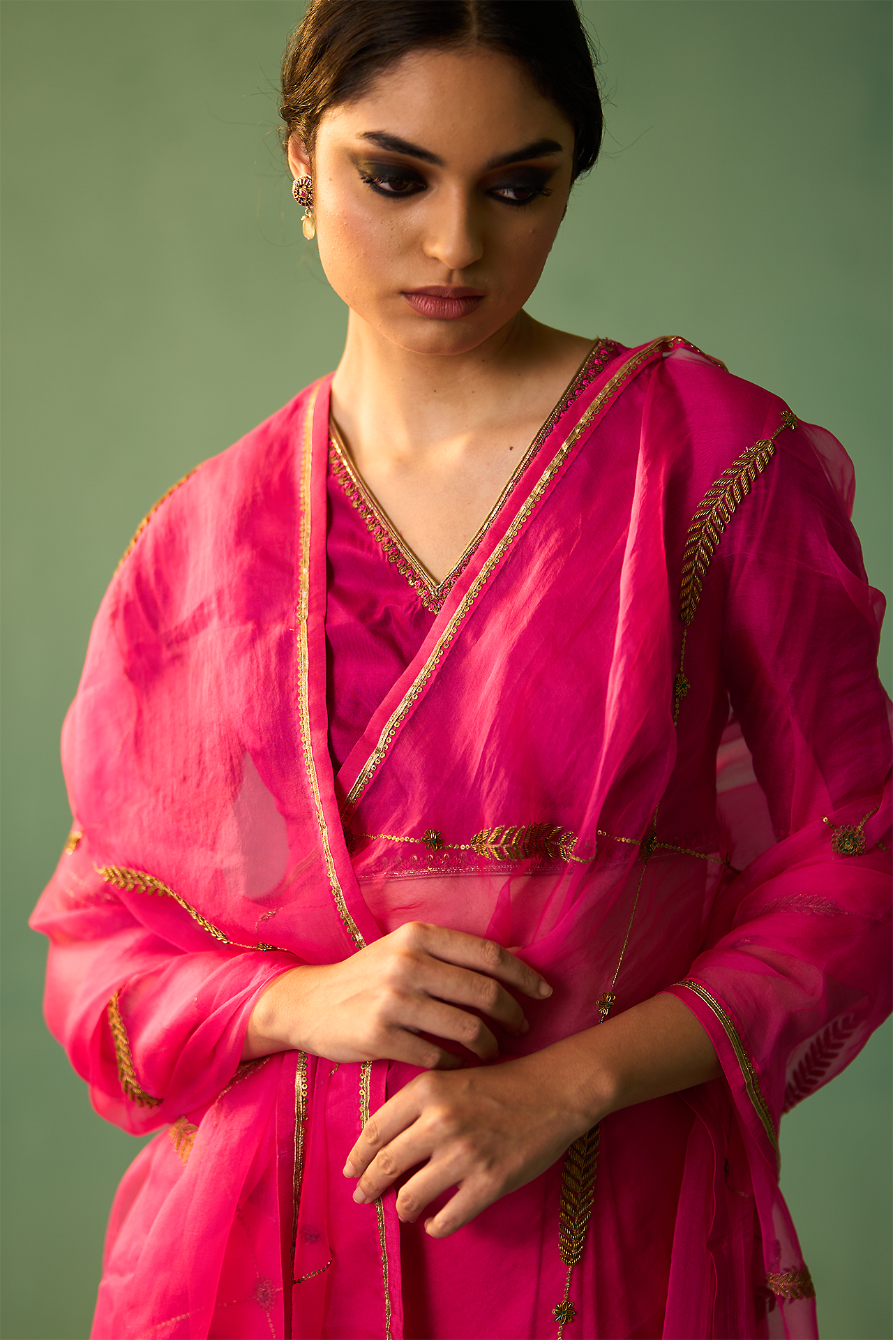 Shabnam Rani Pink V-neck blouse is made in Habutai Silk