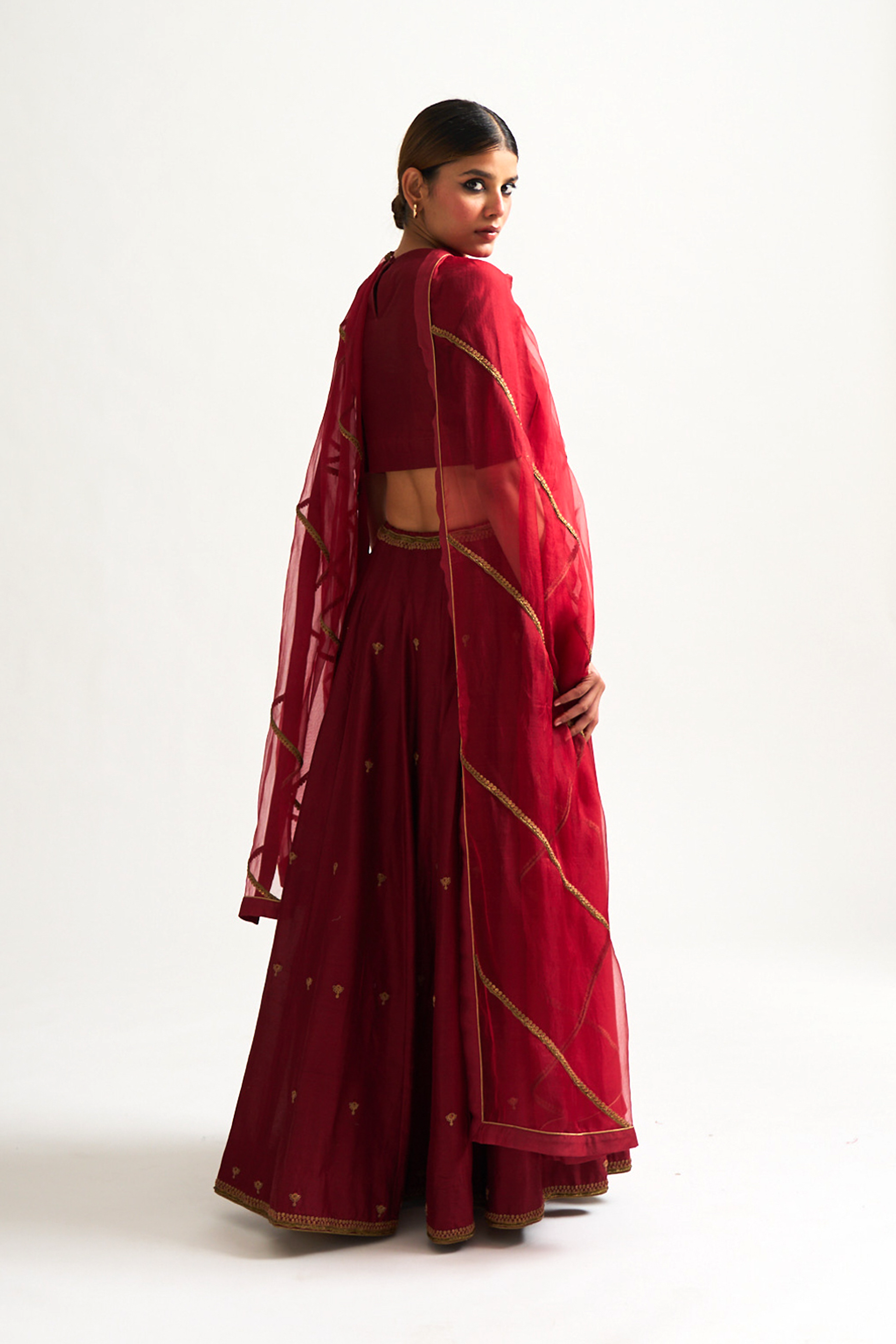 Material: Silk (Lehenga & blouse); Organza (Dupatta)